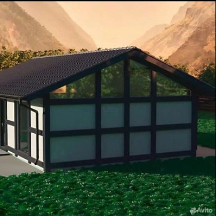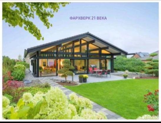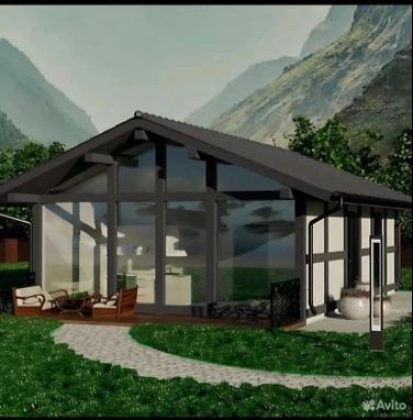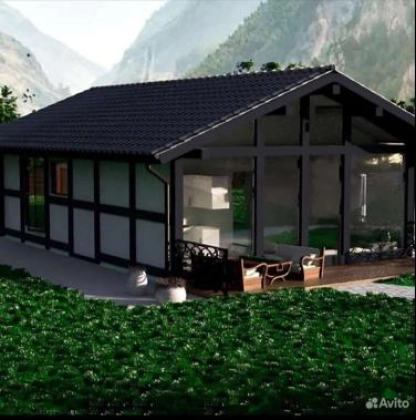 Дом каркаcный из клeёного бруса , с витpажным oстеклением , тёплыми тeхнологичными стeнaми и caмoй безшумной кровлей нa pынке Doke premium.