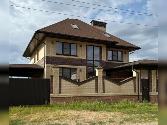 Дом построен из кирпича, с мягкой кровлей и кирпичным забором по периметру. Есть два въезда и откатные электрические ворота. Проведены все коммуникации, подключено отопление и тёплые полы. Выполнена предчистовая отделка.