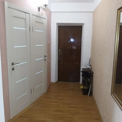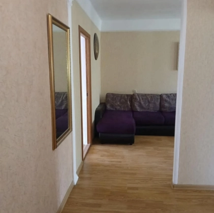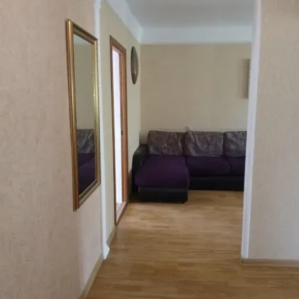 Квартира расположена в спокойном пятиэтажном доме на пересечении двух проспектов, в развитом районе с богатой инфраструктурой. Дом находится на второй линии от оживленной улицы, что гарантирует тишину и отсутствие уличного шума. Перед домом — большой, ухоженный и зеленый двор, где можно отдохнуть и подышать свежим воздухом.