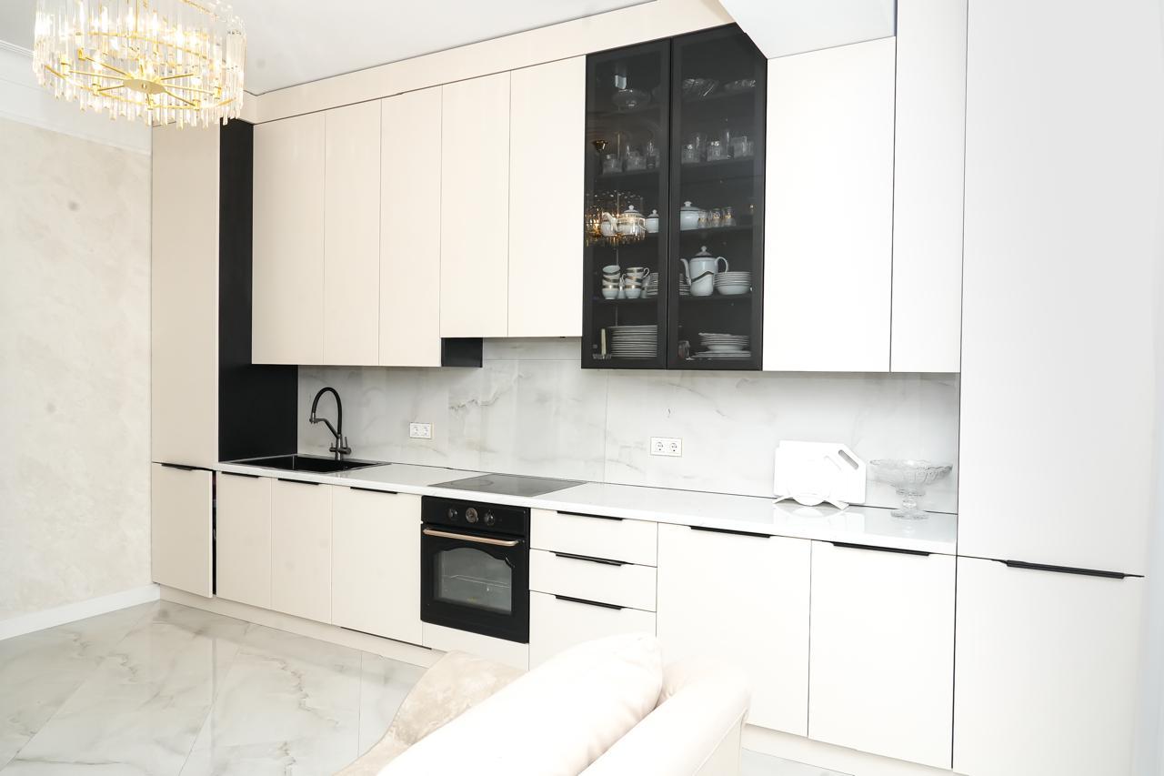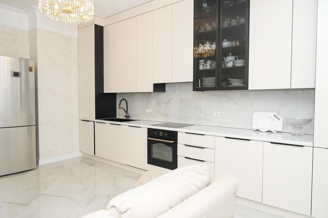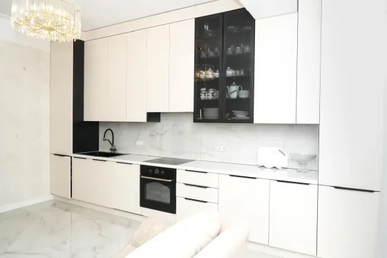 · Просторная кухня 20 кв. м. — настоящая жемчужина этой квартиры. Здесь с комфортом разместится большая обеденная группа, что делает это место идеальным для семейных ужинов и приема гостей.